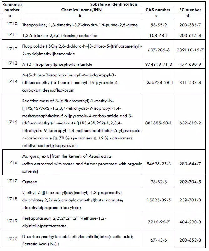 - Commission Regulation (EU) 2023/1490 updating Annex II to include newly classified CMR substances.